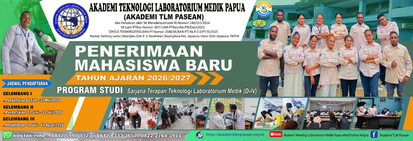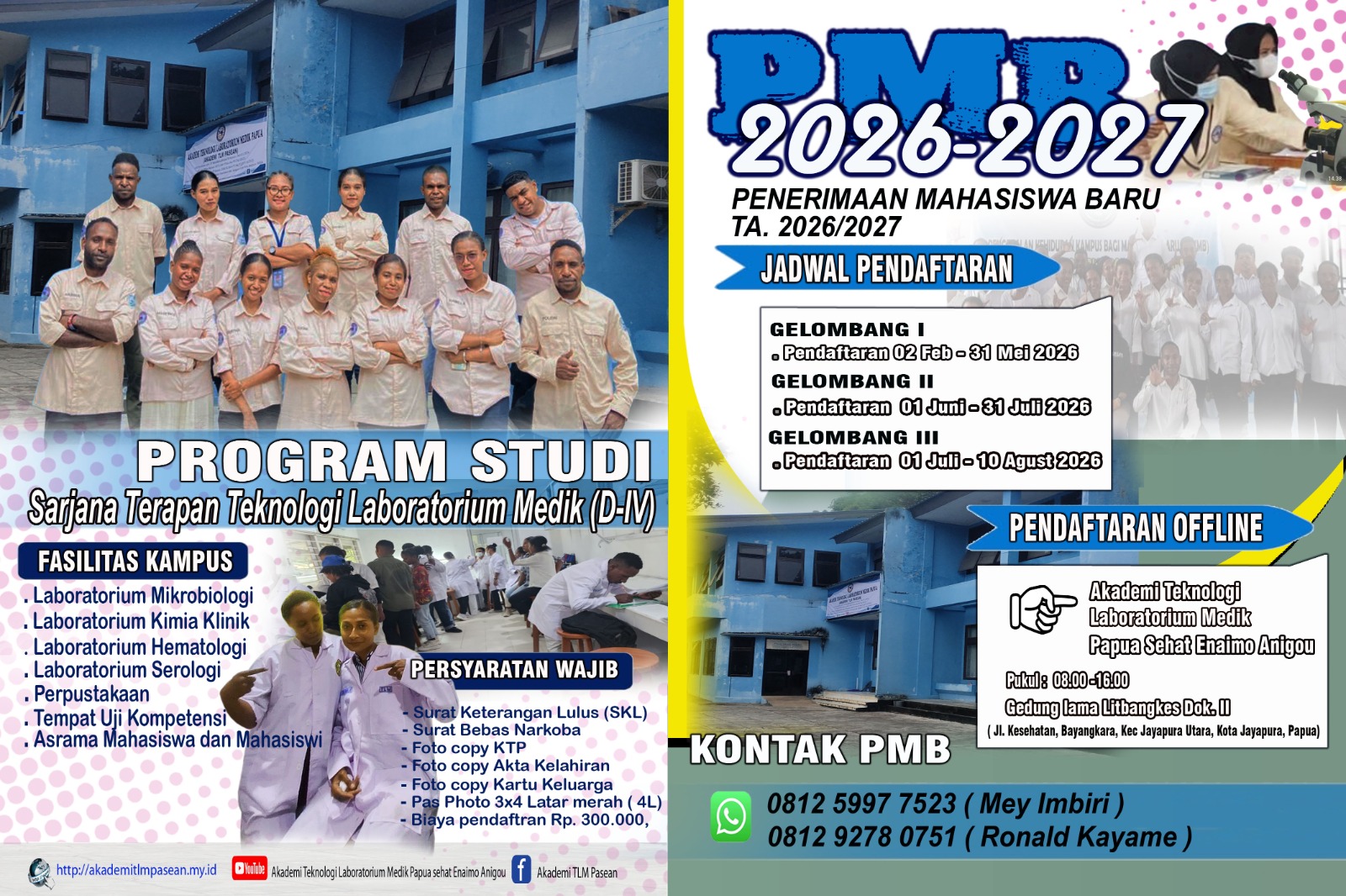 SELAMAT DATANG DI WEBSITE AKADEMI TEKNOLOGI LABORATORIUM MEDIK PAPUA SEHAT ENAIMO ANIGOU PENERIMAAN MAHASISWA BARU TAHUN AKADEMIK 2026/2027